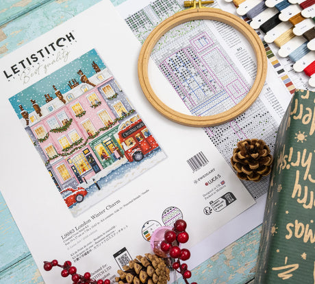 Kit de Punto de Cruz LetiStitch L9983 London Winter Charm – Escena Navideña en Londres