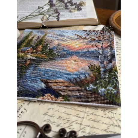 Kit de Punto de Cruz “Quiet Shore” Andriana SANT-21 – Paisaje natural con lago 19x18,5 cm