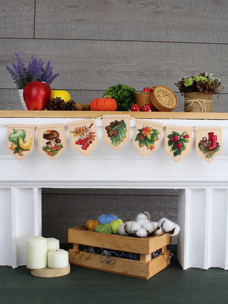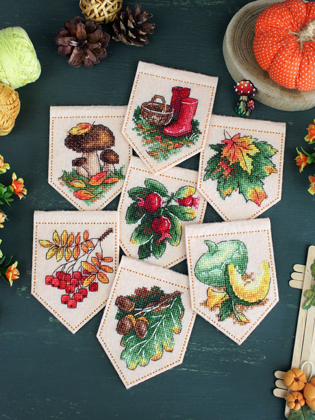 Kit de punto de cruz MP Studia ST-1096 – “Guirnalda otoñal beige (7 banderines)”