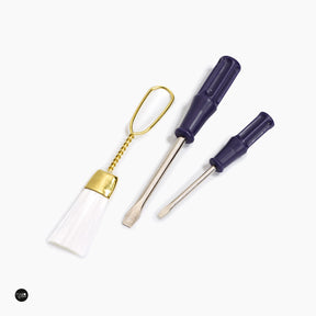 Cepillo de nailon suave, destornilladores resistentes y mango de latón para la limpieza y el mantenimiento de tu máquina de coser. El Kit de Mantenimiento para Máquina de Coser de Prym es una herramienta esencial para mantener tu máquina de coser en perfectas condiciones. Este kit incluye un cepillo de nailon suave de 25 mm de ancho con un mango de latón bien formado que te permitirá limpiar fácilmente los residuos de aceite y otros desechos que se acumulan en tu máquina. También se incluyen dos destornilladores de acero resistente con mangos de plástico azul ciruela con ranuras de 2 mm y 5 mm de ancho para que puedas aflojar incluso los tornillos más apretados. Con este kit de mantenimiento, puedes estar seguro de que tu máquina de coser estará siempre en perfectas condiciones para cualquier proyecto que desees realizar.