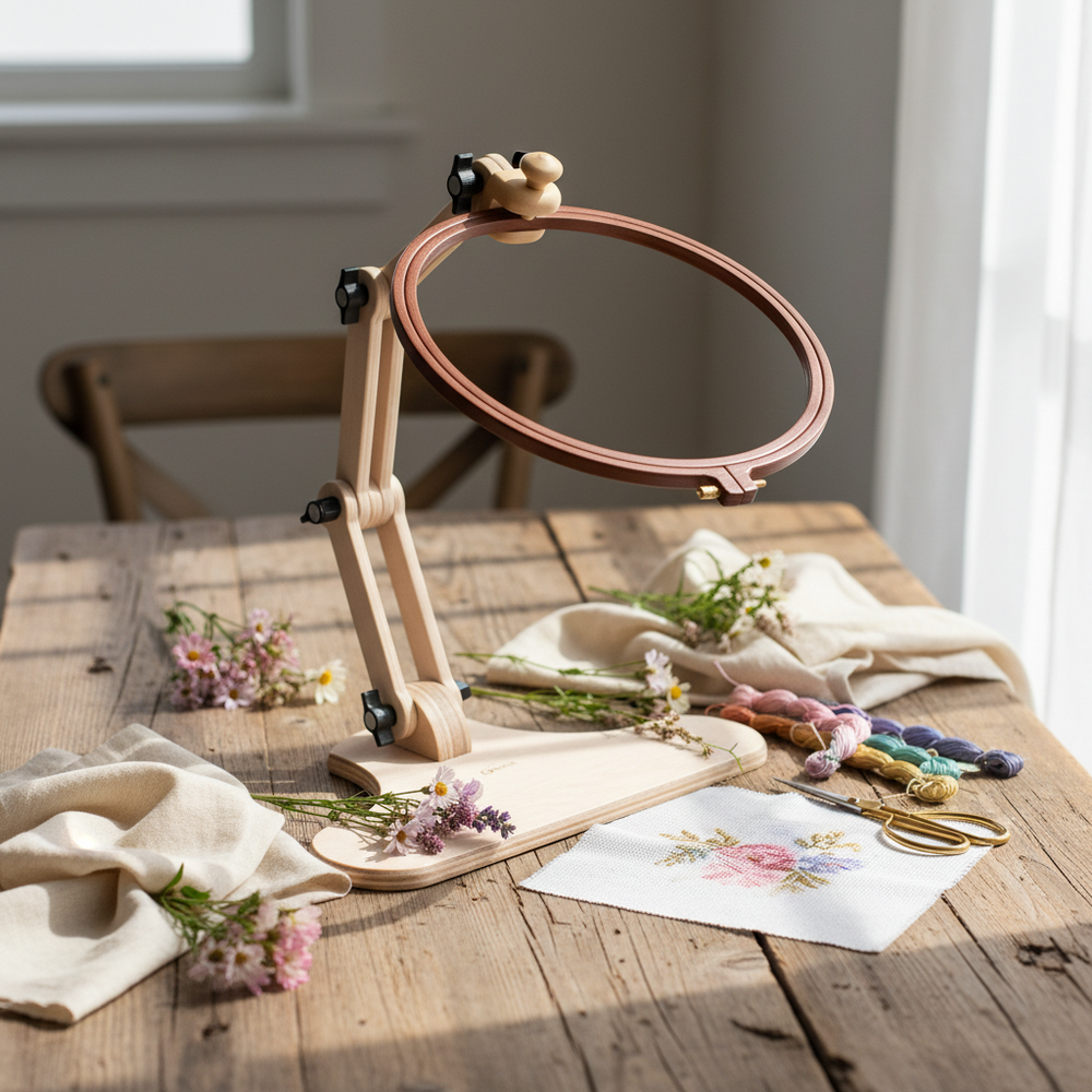 - Diseño Ergonómico: Este soporte está diseñado para permitir el bordado con ambas manos, ofreciendo una experiencia cómoda y eficiente.
