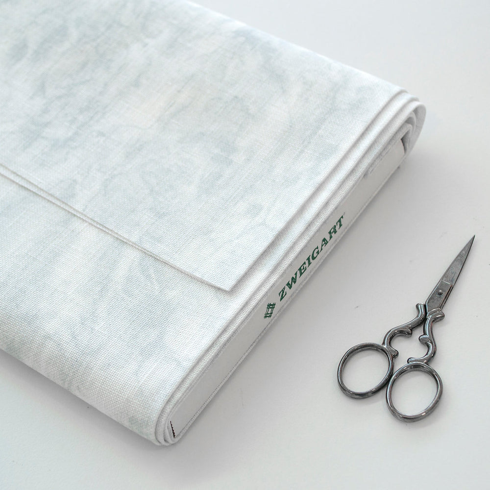 Tela de lino Zweigart Belfast 32 ct color marmoleado 3609/7139. 100% lino natural, 126 hilos por 10 cm. Ideal para punto de cruz y bordado fino.