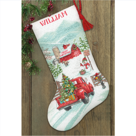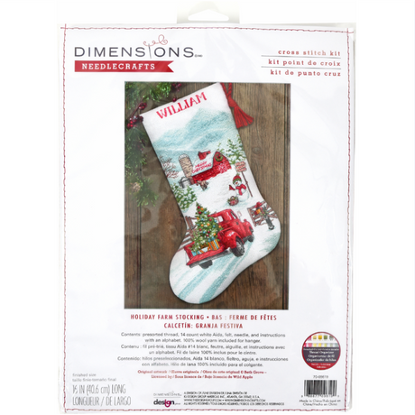 Kit de Punto de Cruz: Holiday Farm Stocking (70-09619) de Dimensions