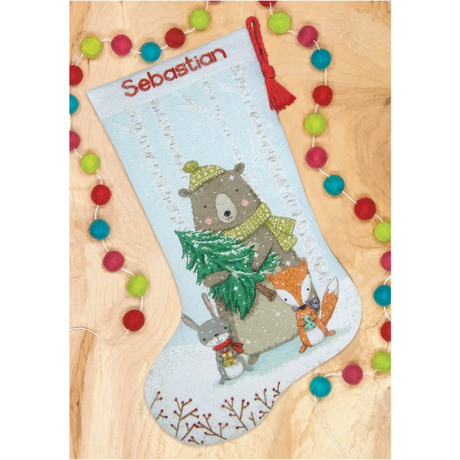 Kit de Punto de Cruz: Woodland Animals Stocking (70-09621) de Dimensions