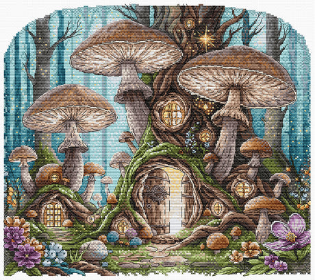 Kit de Punto de Cruz Contado - Cabaña de Hongos, AVA P109