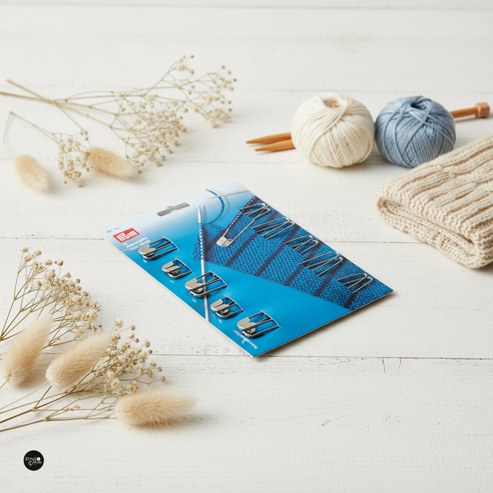 Este kit de tejedora de Prym incluye 10 sujetadores de puntadas de acero inoxidable de alta calidad, diseñados para asegurar temporalmente las puntadas mientras tejes. Cada guardapuntos tiene una longitud de 13,5 cm y está hecho de acero para muelles flexible con punta redondeada suave con la lana, lo que protege el material y evita cualquier daño al tejido. Los sujetadores de puntadas son ideales para asegurar puntadas durante cualquier trabajo manual de tejido de punto, especialmente en hileras cortas. Este kit es adecuado para hilos de diferentes grosores y es una excelente adición a cualquier conjunto de herramientas de tejido. Con el kit de 10 guardapuntos de acero inoxidable de Prym, puede asegurar sus puntadas con facilidad y precisión, lo que facilita su trabajo de tejido y le da resultados profesionales.