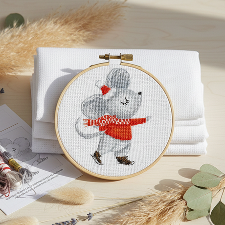 Kit de punto de cruz KLART “Mouse on the Rink” KL8-558 – Ratón patinando