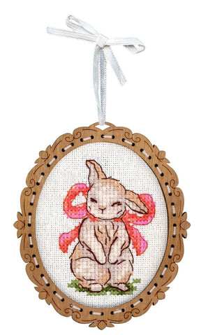 Miniatura – Conejito con Lazo – Bordado sobre Base de Madera MP Studia SO-128
