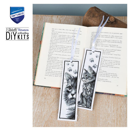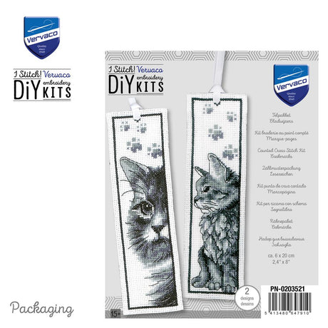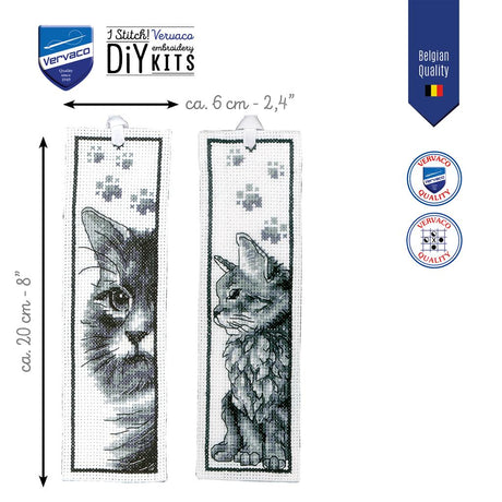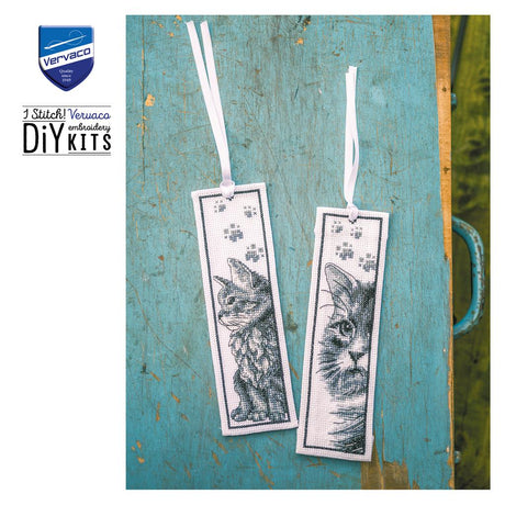 Kit de Punto de Cruz para Marcadores de Libros "Gatos Encantadores" Set de 2 - Vervaco