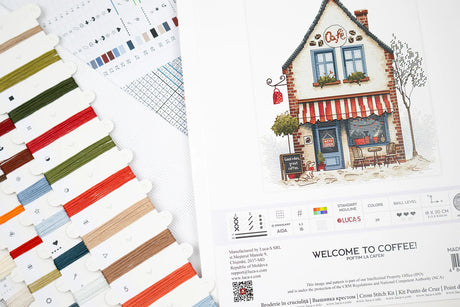 Luca-S B1427 – Welcome to Coffee! | Kit de punto de cruz con cafetería acogedora