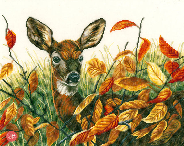 Ciervos en hojas de otoño - Lanarte - Kit de punto de cruz PN-0021223