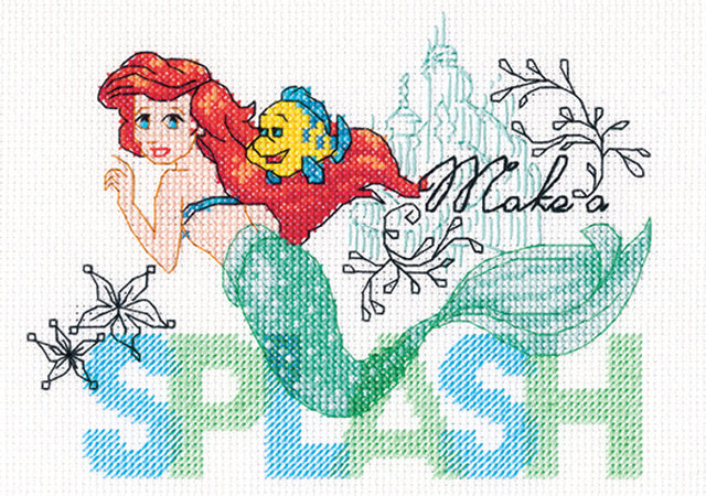 ¡Ariel y Flounder están aquí para recordarles a todos que hagan un chapuzón! Este encantador kit de punto de cruz contado de Dimensions será una maravillosa adición a la habitación de cualquier amante de Disney. Tamaño final: 7" x 5". © Disney www.DisneyPrincess.com. El kit de punto de cruz contado contiene hilo preseleccionado, hilo Aida blanco de 14 hilos, aguja e instrucciones sencillas.