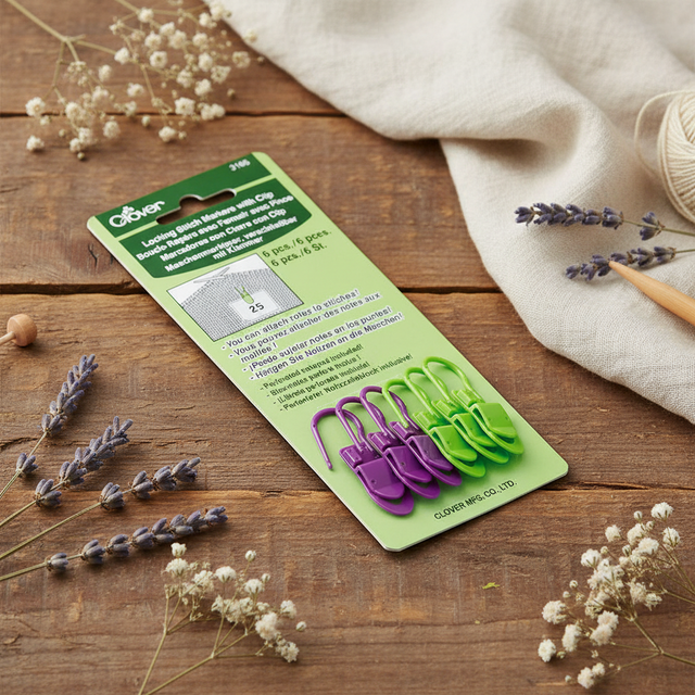 Estos prácticos marcadores de punto con clip Clover son ideales para colocar notas en tus labores de punto o ganchillo. Cada pack incluye 6 unidades en colores lila y verde, con cierre en forma de imperdible para colocar y retirar fácilmente de la labor. Además, cada marcador incluye un pequeño clip para que puedas enganchar notas y recordatorios en ellos, como el número de vuelta, puntos, aumentos y disminuciones. ¡No pierdas más el hilo de tus proyectos de tejido con estos marcadores de punto innovadores de Clover!