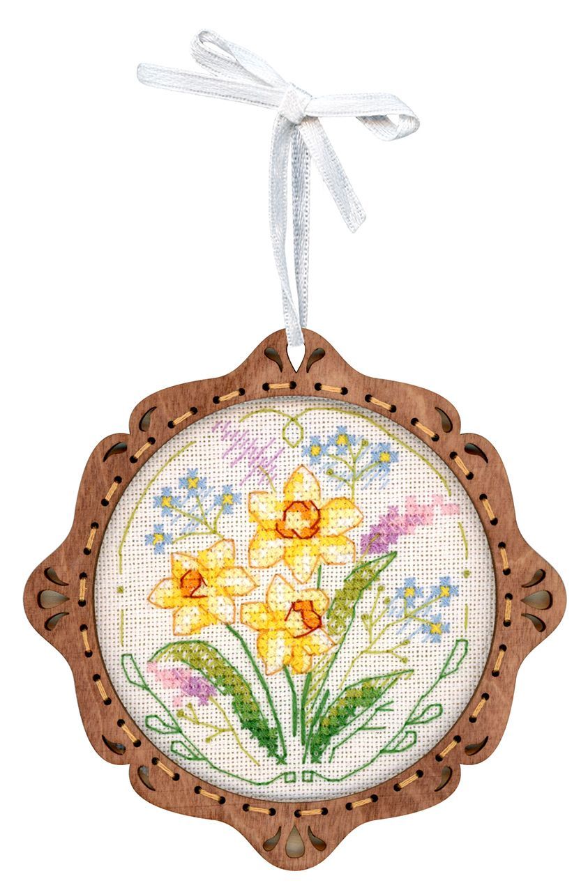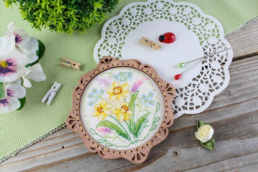 Bordado en Punto de Cruz sobre Base de Madera "Miniatura. Flores de Primavera" SO-093 de MP Studia