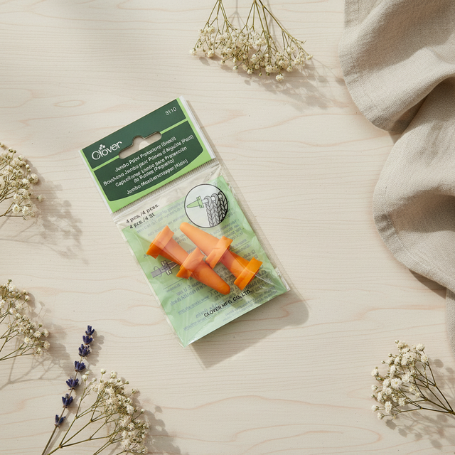 Los protectores Jumbo de Clover son perfectos para guardar los puntos de la labor mientras está en reposo, y su gran tamaño los hace ideales para proteger agujas gruesas.