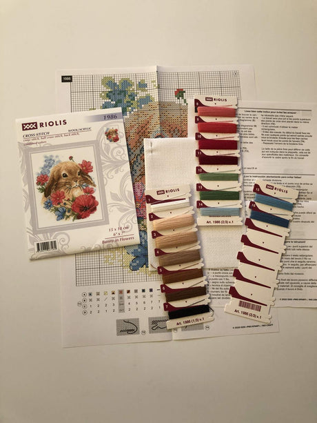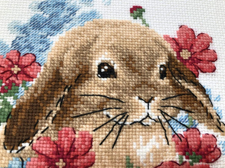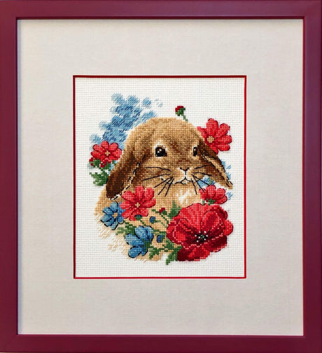 Kit de Bordado de Punto de Cruz - "Bunny in Flowers" - Riolis 1986