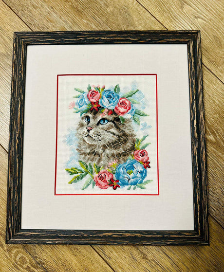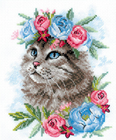 Kit de Bordado de Punto de Cruz - "Cat in Flowers" - Riolis 2088