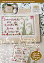 Campanillas de febrero y texto navideño en este patrón de punto de cruz de Cottage Garden Samplings. El modelo se bordó en lino de 32 hilos, ¡pero puedes usar cualquier tejido que elijas!