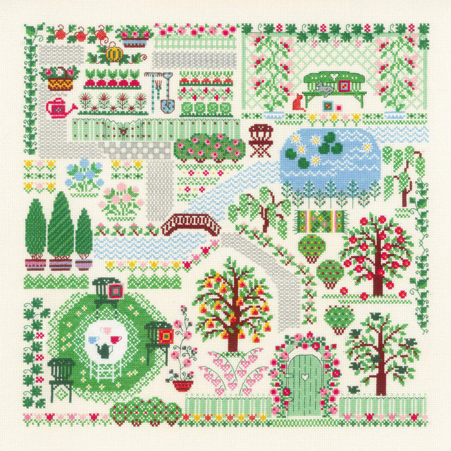 Kit de Bordado de Punto de Cruz - "Mi Jardín" - Riolis 2047