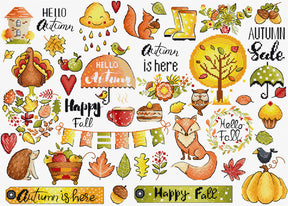Este diseño es perfecto para quienes desean capturar la esencia del otoño en una pieza decorativa, con una amplia variedad de elementos detallados y coloridos.