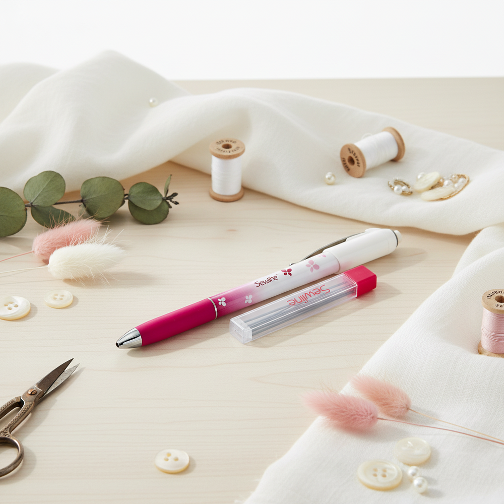 El lápiz mecánico para tela Sewline es la herramienta perfecta para marcar y dibujar en telas. Sus fuertes minas de cerámica especialmente formuladas permiten estirar sobre las telas sin romperse o desgastarse fácilmente. Además, se puede borrar con una goma de borrar polimérica o con agua, lo que facilita la corrección de cualquier error.