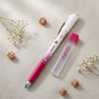 Este paquete contiene un lápiz mecánico para tela de 5-1/2 pulgadas en un hermoso color negro y seis recambios de mina de lápiz de tela rosa de 0.9 mm para asegurar una larga duración de uso. Sin necesidad de afilar o de afeitar madera desordenada, el lápiz se adelanta automáticamente 0.9 pt con un solo clic.