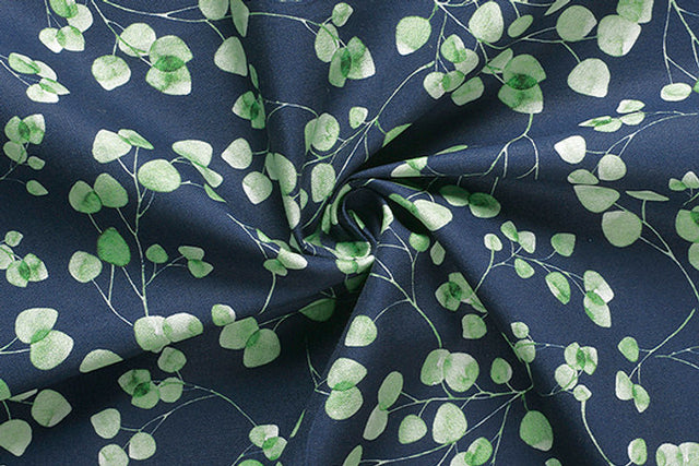 - Diseño: Motivos de hojas en un elegante fondo azul marino