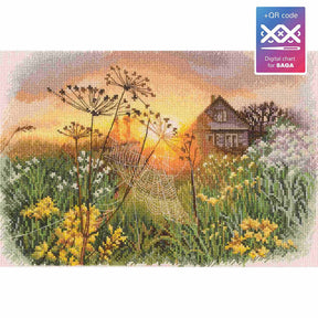 Sumérgete en un paisaje campestre mágico con el kit de punto de cruz "Through the Cobweb" de RTO. Este diseño avanzado captura la belleza de un amanecer brillante detrás de una telaraña entre flores silvestres, con una acogedora casa de campo al fondo. Perfecto para los amantes de la naturaleza y los detalles delicados.