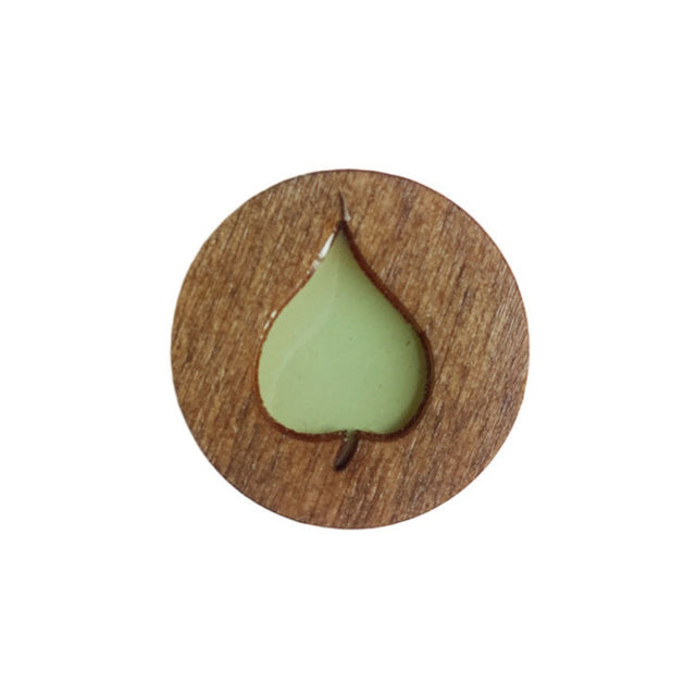 • Material: Hecho de madera contrachapada con un inserto de resina epoxi en forma de hoja verde.