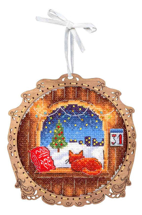 The cross stitch kit "Miniature. Winter through the window" SO-119 by MP Studia is a charming depiction of a warm Christmas interior with a cat looking out of the window, seeing the snow and a lit Christmas tree outside. This festive design is perfect for adding a touch of winter warmth to your home. The kit includes: