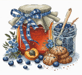 Enjoy the cozy charm of home with AVA's Homemade Delights cross stitch kit. This sweet design features a kitchen scene filled with homemade goodies—cookies, jam, blueberries, and wildflowers—evoking the warmth of home and the small pleasures of everyday life.