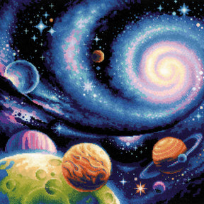 Explore the wonder and mystery of the cosmos with the Riolis 2039 "Other Worlds" Cross Stitch Embroidery Kit . This stunning design features a galactic scene filled with vibrant planets and a galactic spiral, capturing the essence of the universe and its infinite possibilities.