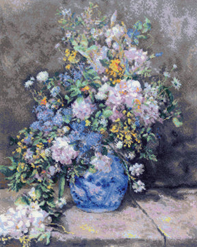 Embark on an artistic journey with the Cross Stitch Embroidery Kit "Spring Bouquet after PA Renoir's Painting" by Riolis 2137 . This kit captures the essence of Pierre-Auguste Renoir's famous painting, featuring a stunning bouquet of spring flowers in a blue jug, with a soft background that highlights the vibrant colors of the bouquet.