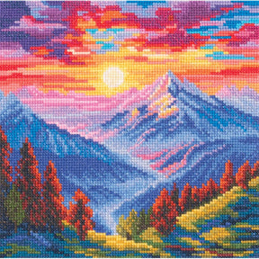 Create a stunning landscape full of life and color with RTO's "Colour of the Sun" cross stitch kit. This vibrant design captures the magical beauty of a sunset over majestic mountains, offering a radiant color palette that conveys positive energy and joy with every stitch.