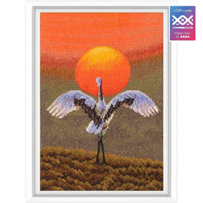 Admire natural elegance in motion with RTO's "Dance" cross stitch kit. This powerful design captures a crane majestically spreading its wings against a fiery sunset, symbolizing freedom, harmony, and wild beauty in a poetic moment.