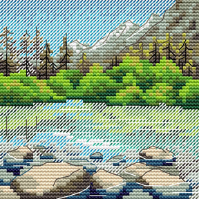 "Mountain Lake" is a delicate design depicting a peaceful mountain lake surrounded by the majesty of the mountains and the beauty of nature. This kit is perfect for those who enjoy stitching landscapes and are looking for a small but detailed project.