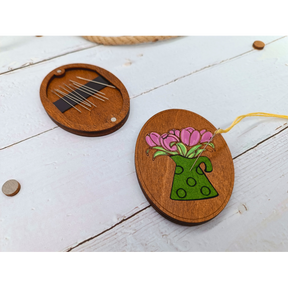 Discover this charming wooden needle case decorated with pink tulips, perfect for storing your embroidery needles safely and stylishly. The Kind Fox by Wizardi KF056/120P model features a magnetic closure and handcrafted design, ideal for discerning embroiderers.