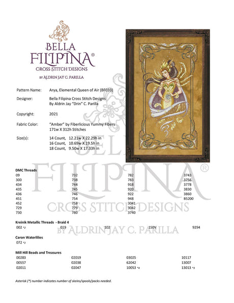 Arya, Elemental Queen of Air - Bella Filipina - Cross stitch chart
