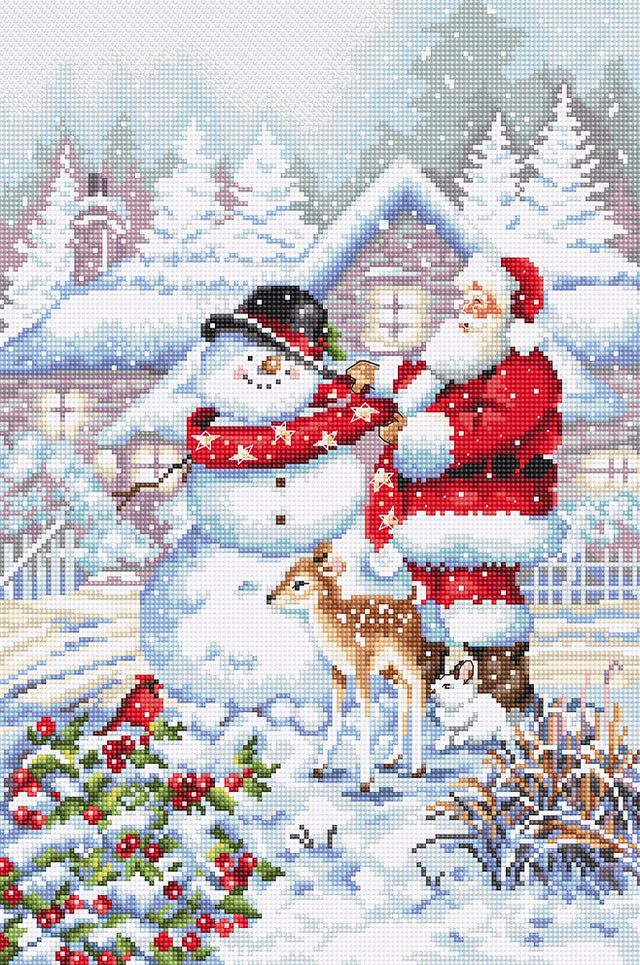 Christmas Charm: Cross Stitch Kit L8015 with Snowman and Santa by LETISTITCH