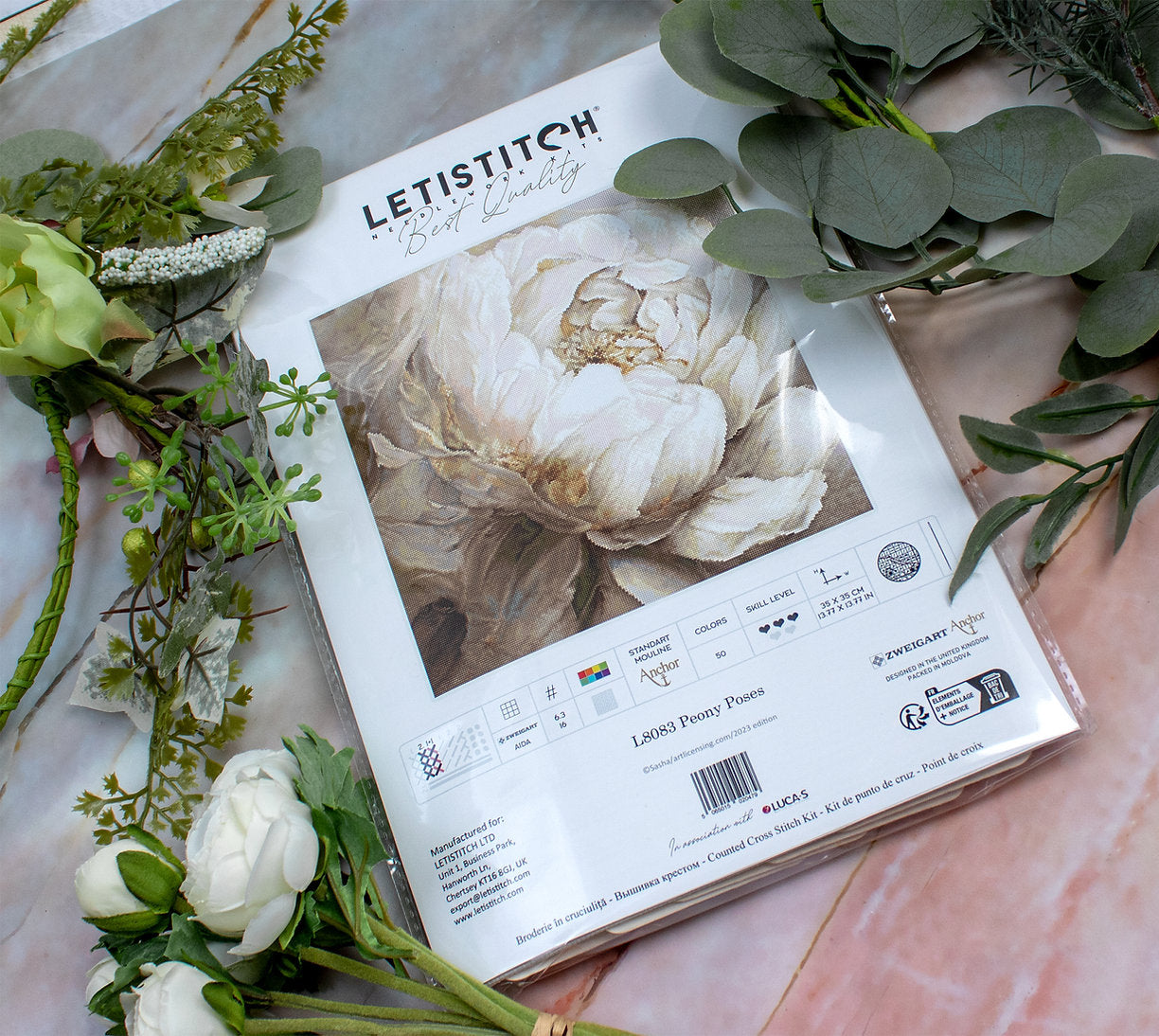 Peony Poses - L8083 LETISTITCH - Cross Stitch Kit