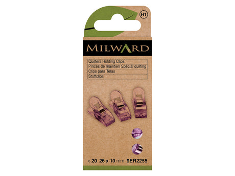 Milward: Pack of 20 Fabric Clips, 26x10 mm, in Elegant Violet Color