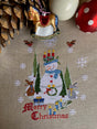 "Regali di Natale" is a color counted cross stitch scheme depicting a Christmas scene with a snowman in the center of focus.