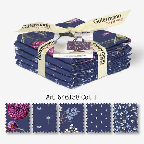 Set of 5 Gütermann BRILLIANT Fabric Scraps for Patchwork and Decoration col.1