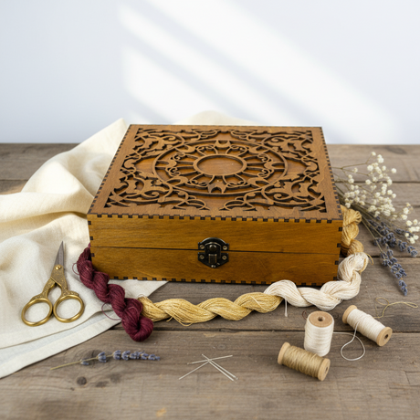 Needle Organizer with Thread Box on Wooden Base, Walnut, 210 Holes OG-064