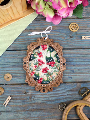 The MP Studia SO-129 – Miniature “Cranberry Forest” embroidery kit combines the charm of traditional cross-stitch with an elegant carved wooden base. The design features a delicate bouquet of cranberries and green leaves against a light background, creating a natural and decorative piece perfect for hanging or gifting.