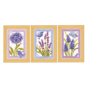 Bird with flowers set of 3 - Vervaco - Cross stitch kit PN-0143718