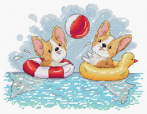 The MP Studia SM-776 – Fun Bathing cross stitch kit captures all the joy of summer with two adorable corgis playing in the water. Featuring colorful floats and a ball, this design conveys fun, energy, and tenderness in every stitch. Perfect for animal lovers and cheerful motifs.
