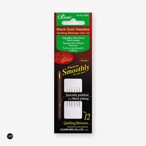 Fine black quilting needles Nº12 BLACK GOLD by Clover 4962 is backordered and will ship as soon as it is back in stock.