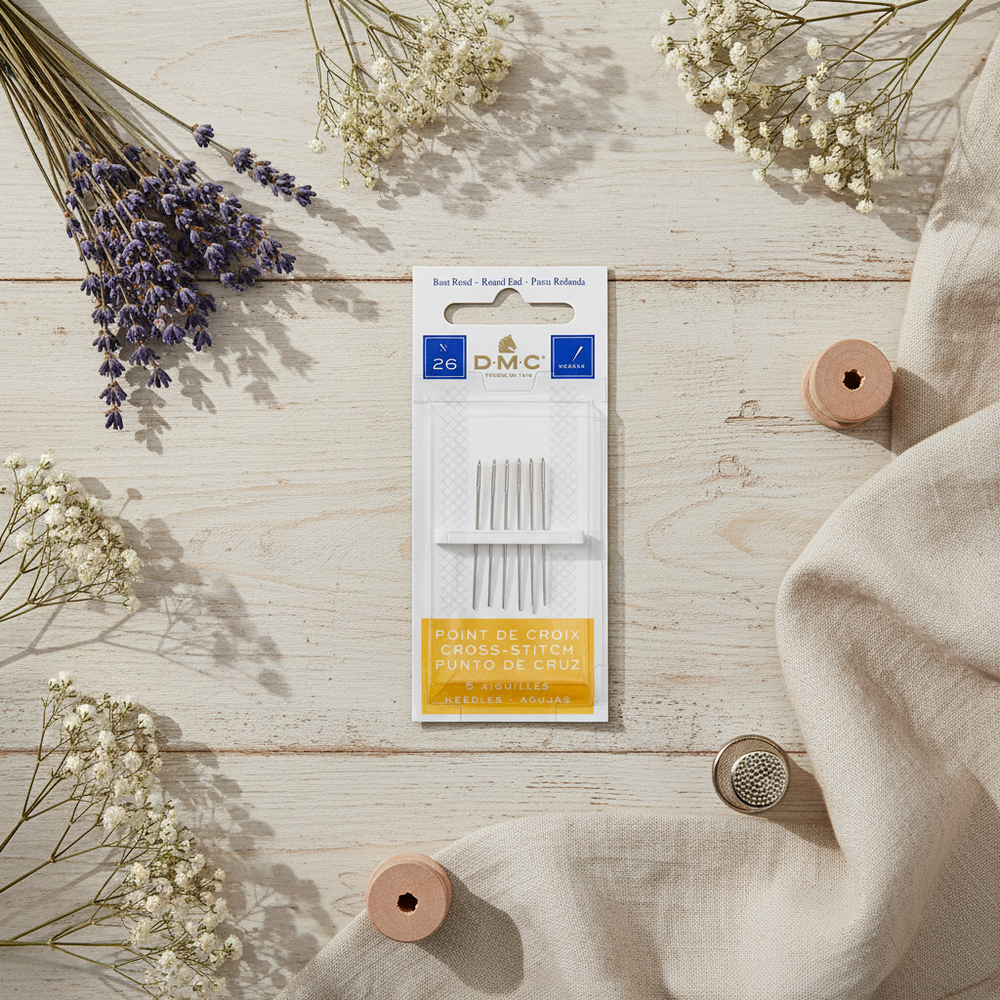 Pack of 6 DMC Cross Stitch Embroidery Needles No. 26 - Rounded Tip