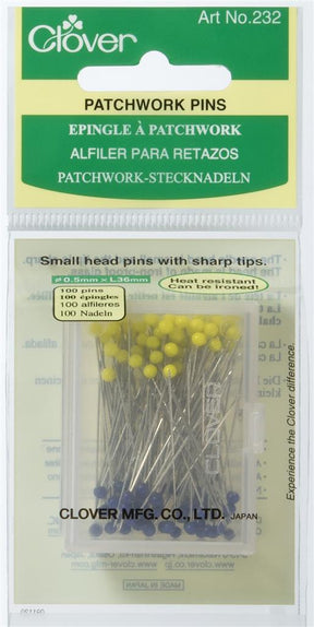 These CLOVER 232 patchwork pins are ideal for sewing and quilting projects. Designed with a small head and extremely sharp tips, they make it easy to pin precisely onto fabrics without damaging them. The heads are made of iron-resistant glass, making them safe for use while ironing.